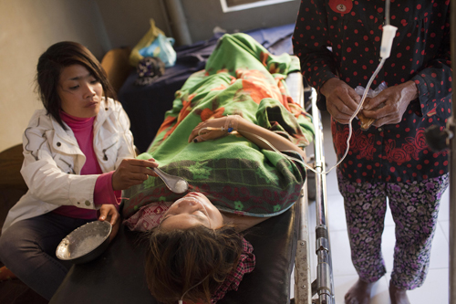 Garment worker Buot Chenda (C) receives treatment at a hospital after she was shot during a protest in Svay Rieng province in February 2012. Witnesses implicated former Bavet town Governor Chhouk Bandith in the shooting. Photograph: Derek Stout/Phnom Penh Post
