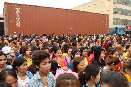 More than 2,000 workers demonstrated in front of Phnom Penh’s Gladpeer Garment Factory yesterday, demanding a higher minimum wage and several other concessions.