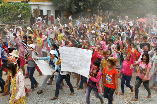 About 500 garment workers take part in a protest at the Canadia Industrial Park in Phnom Penh’s Meanchey district, Tuesday, Jan. 15, 2013. Photograph: Sreng Meng Srun/Phnom Penh Post