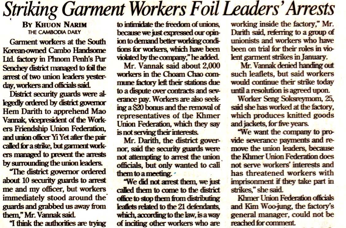 The Cambodia Daily: Unions Set to Begin First Phase of Nationwide Strike